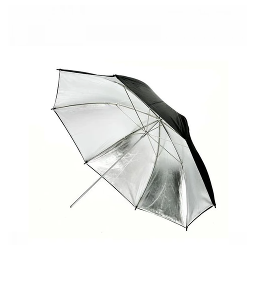 The 33" studio reflective umbrella with sliver reflective internal face and black back. Lightweight, easy assemble, the silver internal lining minimizes light loss while maximizing light spread, black external for reducing spill/deepening shadows up to 30% than white back, great for both portraits and group shots or for product shooting of larger objects.