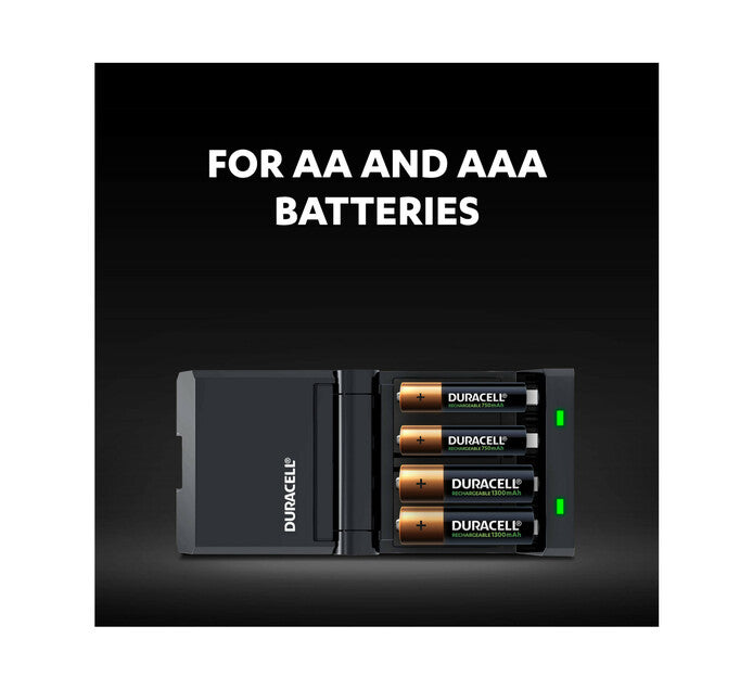 - Duracell Hi-Speed Charger charges 4 AA rechargeable batteries in 4 hours (Approx. 90% of full charge, when using Duracell 1300 mAh AA NiMH batteries. Approx. 80% of full charge when using Duracell 750 mAh AAA NiMH batteries.)
