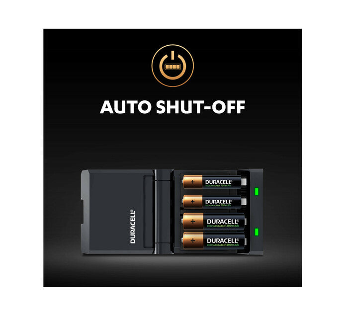 Duracell Hi-Speed Charger - ready in 4 hours* (Approx. 90% of full charge, when using Duracell 1300 mAh AA NiMH batteries. Approx. 80% of full charge when using Duracell 750 mAh AAA NiMH batteries.). Duracell Hi-Speed Charger is your simple, safe and reliable solution to never missing out on anything that happens in your life. The Duracell Hi-Speed Charger comes with a partial charge indication and after batteries are completely charged, the charger can automatically shut off to prevent overheating. Its 9 safety features make sure that you have the power you need without the worry. You can rely on Duracell s best, long-lasting power every day. Start a new adventure in life with full power, high performance and good value for money - the perfect balance.