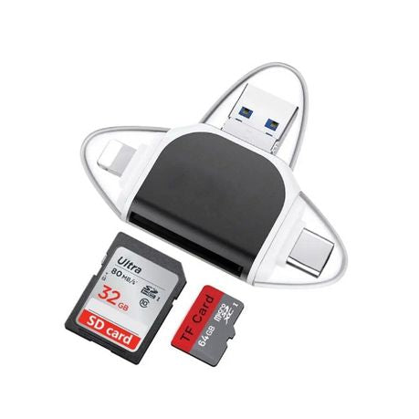 6-in-1 : USB-Type-C, Lightning, USB Type-A, Micro USB, SD Card, TF Card