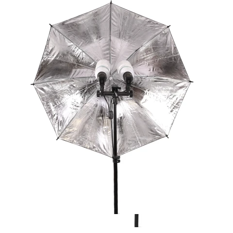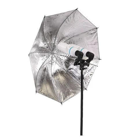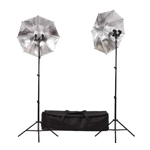 The 120W Fluorescent Kit is a fantastic 2 head, dual globe setup that has been used by photographers for a very long time. Continuous lighting is a great option for the photographer or videographer who shoots subjects that are sensitive to strobes, newborns, food, portraits and video production in general are but a few categories that continuous lighting will be fantastic for. With fluorescent globes, heat generation is cut by close to 90% of tungsten, making it a joy for models and food alike. Each globe has an output of 30W bringing the total up to 120watts. The two black silver umbrellas that come with the kit make setting up your modifiers quick and easy, no need to struggle with softbox poles. Each head can be turned on and off individually. The silver umbrellas help to create beautiful highlights as well as catchlights in the eyes of your subjects.